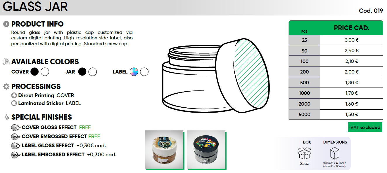 Round glass jar with plastic cap customized via