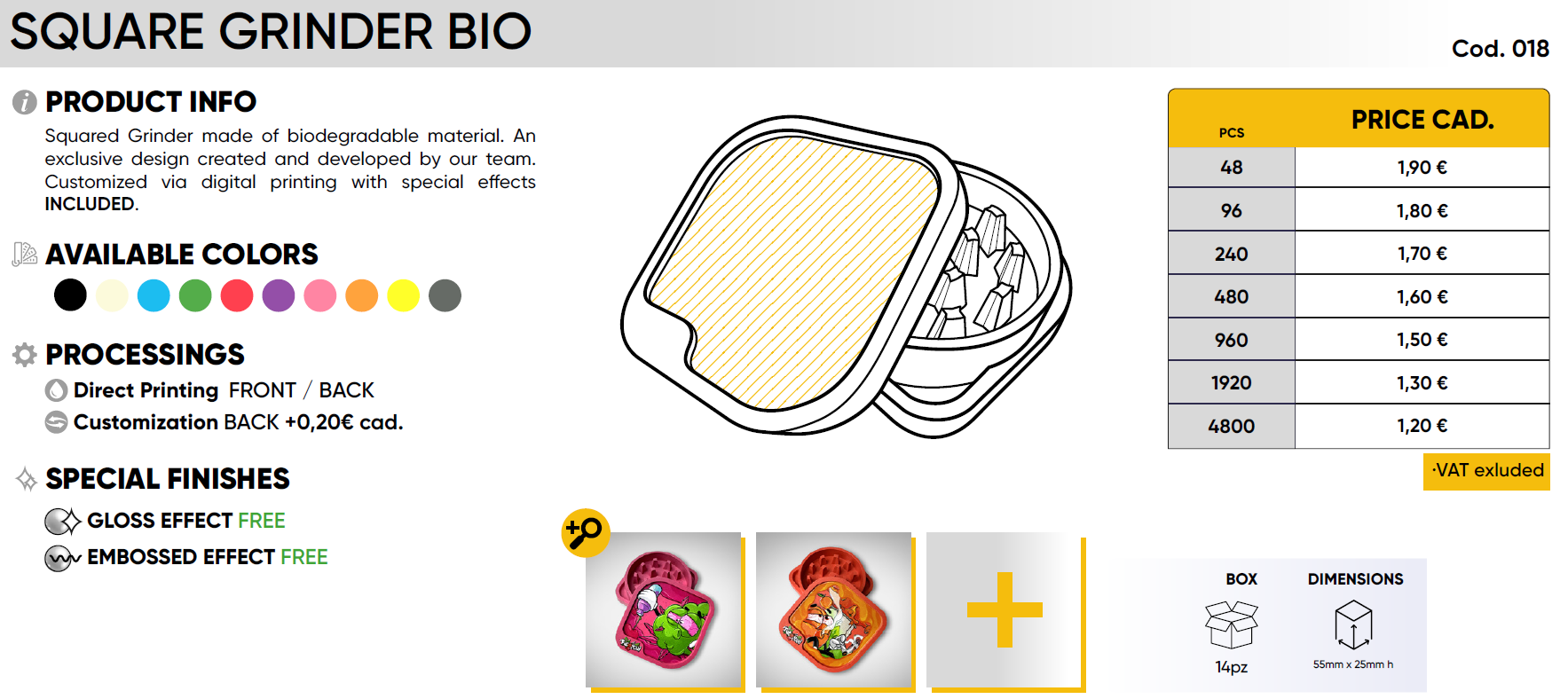 Squared Grinder made of biodegradable material. An